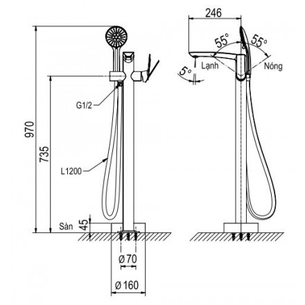 Sen tắm đứng dùng cho bồn tắm 320 Viglacera Platinum P.50.320 |